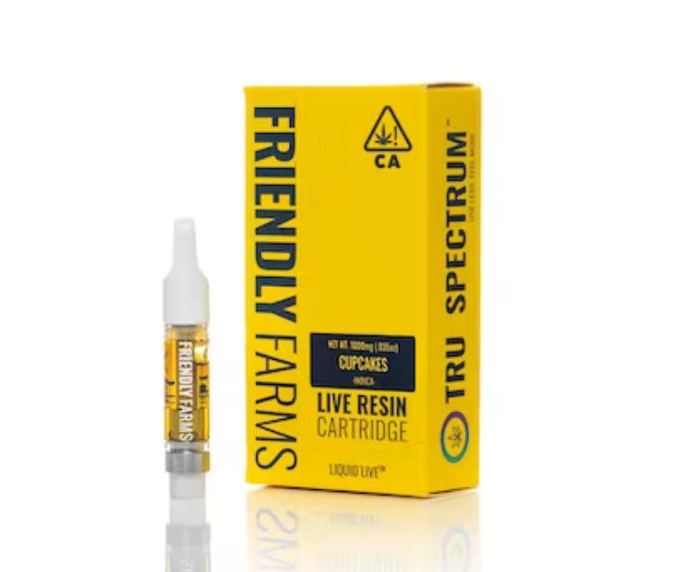 The Friendly Farms Cupcakes Live Resin Cartridge features a dessert-flavored concentrate renowned for its sweet and complex profile. Friendly Farms crafts this live resin cartridge from freshly harvested and flash-frozen cannabis flower, a process that preserves the essence of the “living” plant to ensure a full spectrum of terpenes and cannabinoids. This method, known as the Tru Spectrumâ„¢ difference, ensures the oil contains no filters or additives, offering the most natural representation of the strain’s unique flavors and effects.